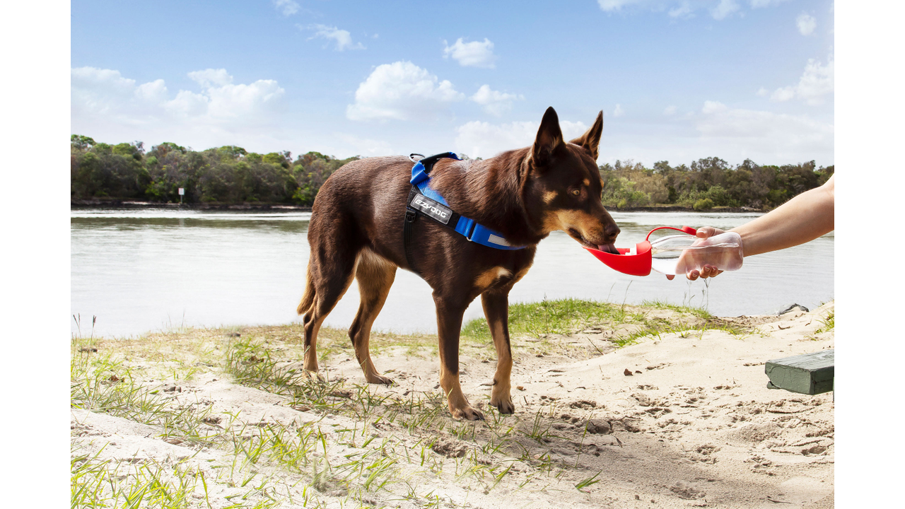 Encouraging pets to drink more water is crucial to avoid heat stress and dehydration. Dog hydration products, like the EzyDog leaf bottle, help eliminate the risk of your dog being caught without access to any fresh water.