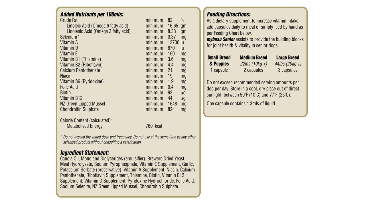 • Assists with bone & joint health, general well-being, vitality and coat/skin condition